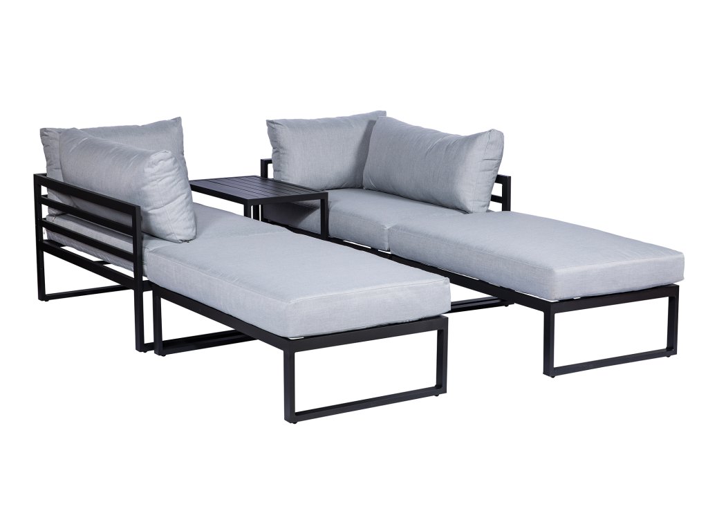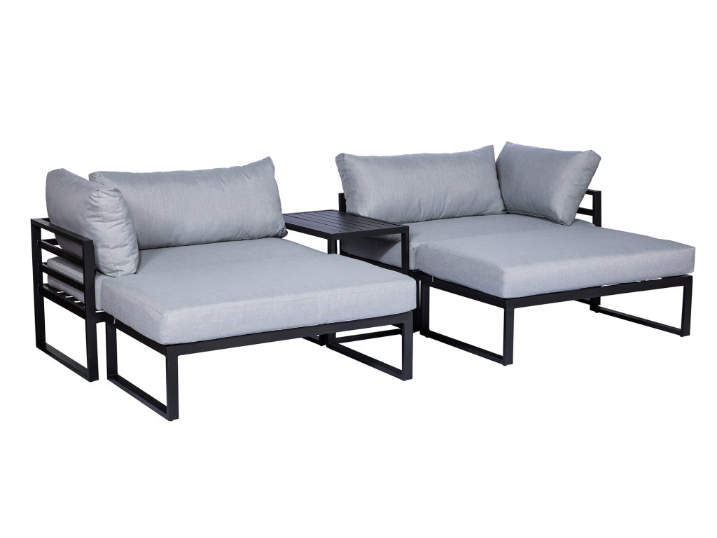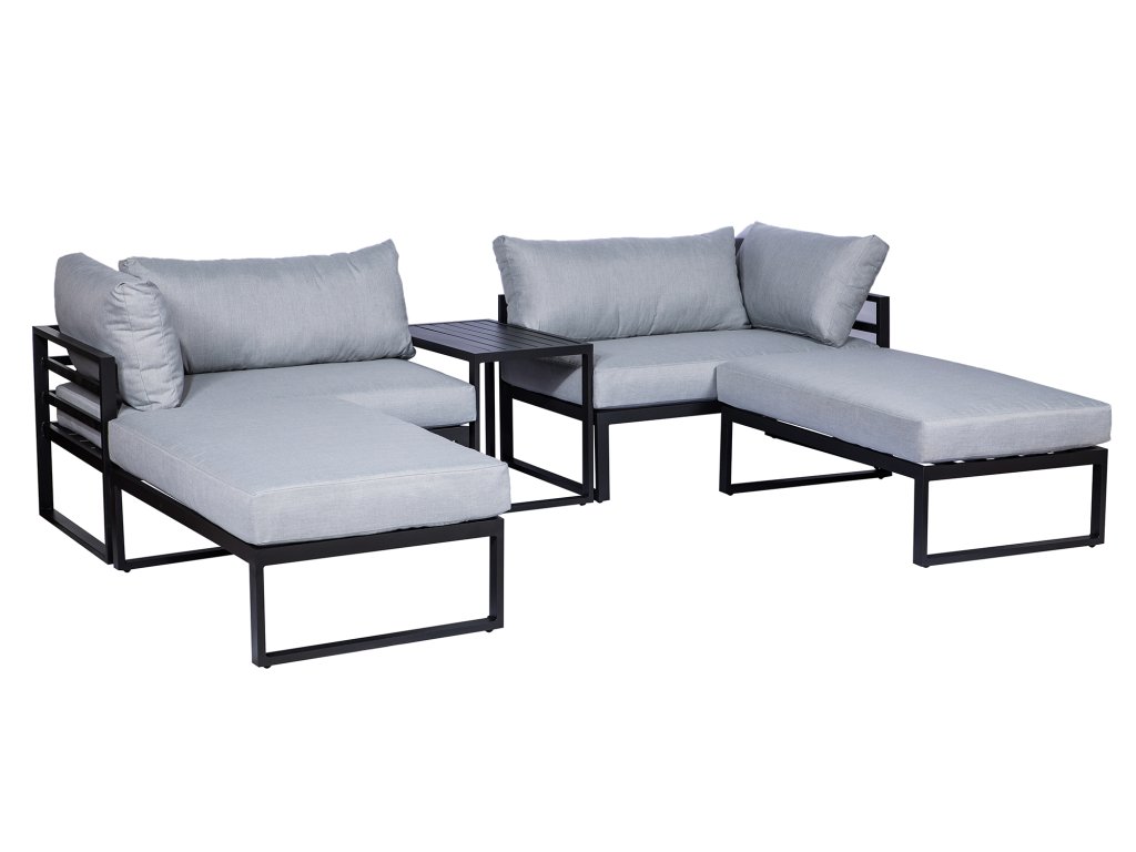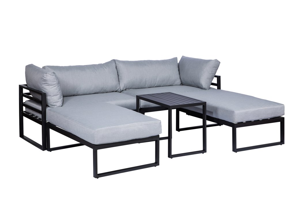 Originální design, vysoký komfort, dlouhá životnost. Tím vším se pyšní sestava SANDEFJORD vhodná jak na Vaši zahradu, tak na terasu, kde Vám zajistí příjemné chvíle odpočinku a relaxace. Konstrukce je vyrobena z hliníku, který je metodou práškového lakování ošetřen proti rzi. Podnoží je opatřeno stabilizačními kluzáky, jež zabrání poškrábání povrchu, na němž je sestava položena. Podsedáky o tloušťce 10 cm zajistí maximální komfort sezení i ležení. Všechny polštáře i podsedáky jsou opatřeny snímatelnými potahy, takže je v případě potřeby můžete jednoduše vyprat. Stolek, který svým minimalistickým provedením ladí s celou sestavou, váží pouhých 3,3 kg, tudíž manipulace s ním není nijak náročná. Hlavní předností setu SANDEFJORD, která z něj činí opravdový originál, je variabilita sestavení. Set je tvořen čtyřmi samostatnými moduly, které lze skládat do libovolných uskupení. Součástí setu jsou dva otomany, dvě křesla a stolek. Jednotlivé části můžete sestavit tak, jak zrovna potřebujete.