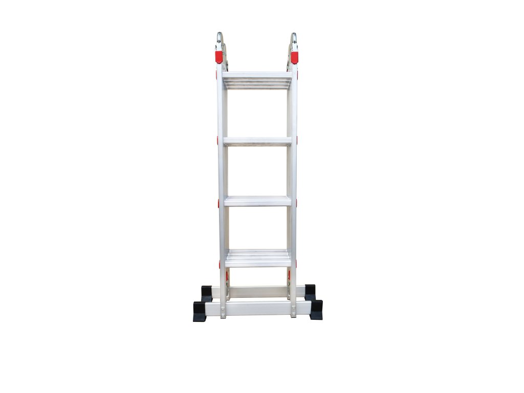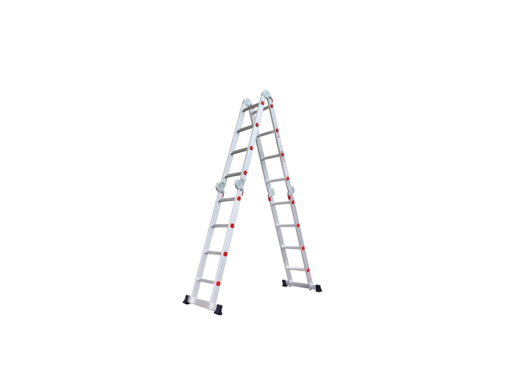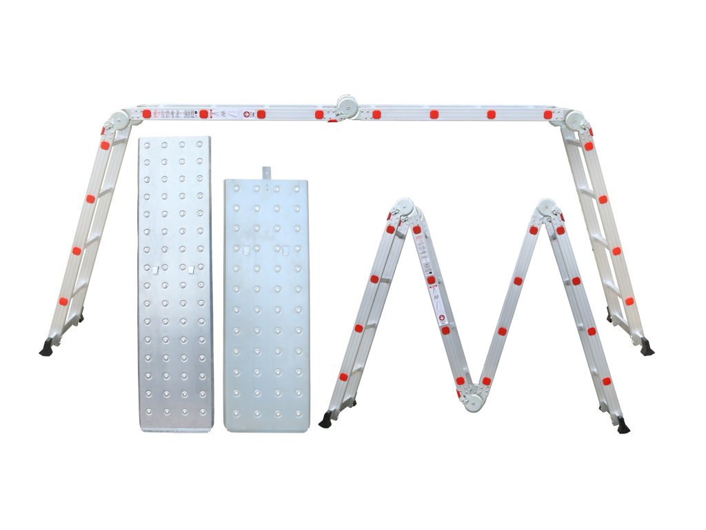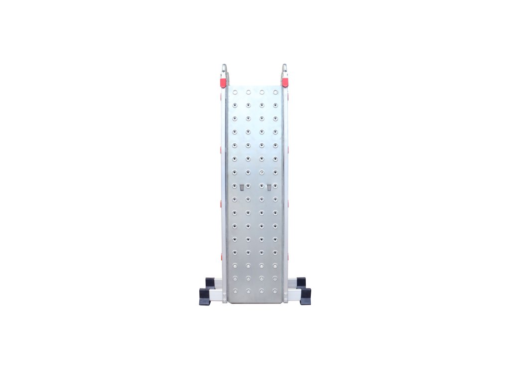 Multifunkční hliníkový žebřík disponuje unikátní konstrukcí, která je velmi pevná a stabilní a zároveň umožňuje složení do minimálních úložných rozměrů. Možnost složení do minimální úložné velikosti uvítají všichni ti, kteří se potýkají s nedostatkem místa domácnostech či dílnách nebo ti, kteří potřebují žebřík často přepravovat. Použití hliníkových materiálů výrazně snižuje hmotnost žebříku a usnadňuje tak manipulaci při práci a přepravě. Díky uzamykatelnému kloubovému mechanismu nabízí žebřík několik variant rozložení. Můžete ho využít jako dlouhý rovný žebřík o délce až 4,73 m, jako štafle nebo jako lešení s podlážkou, která je součástí balení (2 ks).
