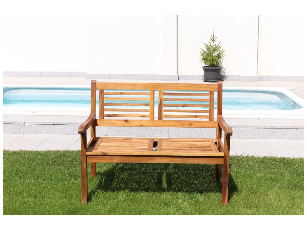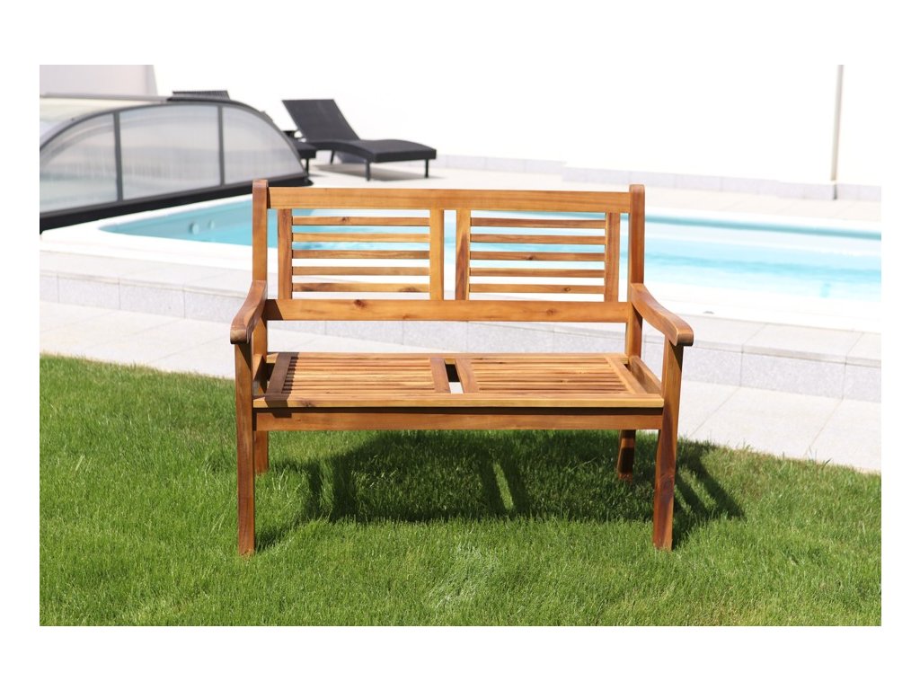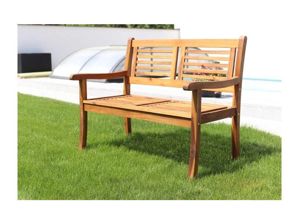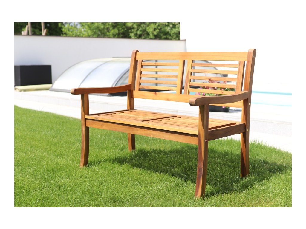 Zahradní lavice Rene z akáciového dřeva nabízí elegantní design a kvalitní zpracování. Díky přirozenému vzhledu akáciového dřeva bude lavice skvěle vypadat na každé zahradě, balkonu nebo terase. Sedák o rozměrech 50 x 102 cm poskytne dostatek místa k sezení pro 2 osoby. Zajímavě tvarované područky a opěrka zad podtrhnou elegantní vzhled lavice a zaručí pohodlné sezení. Svými rozměry ideální na terasu nebo balkon. Dodávaná demontovaná v krabici.