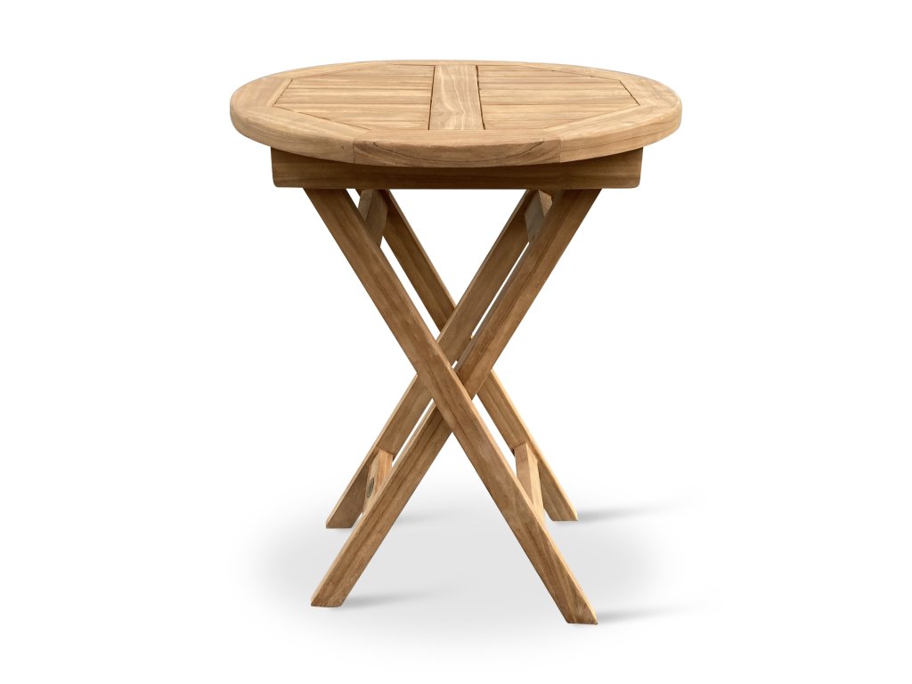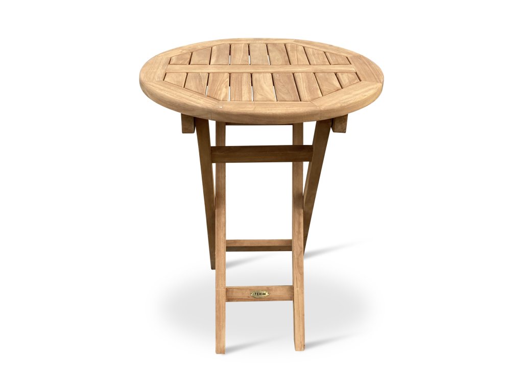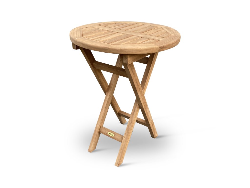 Kulatý skládací stolek z kvalitního exotického dřeva teak. Menší zahradní stolek o průměru 60 cm využijete např. jako odkládací stolek na balkoně, terase. Ideální místo pro vaši ranní kávu, případně pro odložení drobností jako jsou noviny, časopis nebo mobilní telefon. Díky možnosti složení nezabere ani při uložení mnoho místa.