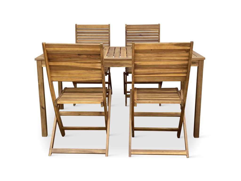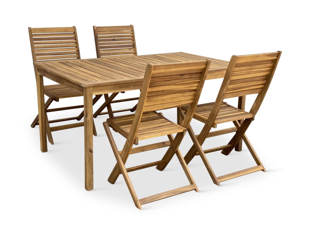 Zahradní stůl doplňuje skládací židle Mandy vyrobená z odolného akáciového dřeva. Díky přirozenému vzhledu akáciového dřeva židle snadno esteticky zapadne do jakékoliv zahrady či terasy. Ve složeném stavu ji jednoduše uskladníte. Nosnost činí až 100 kg.