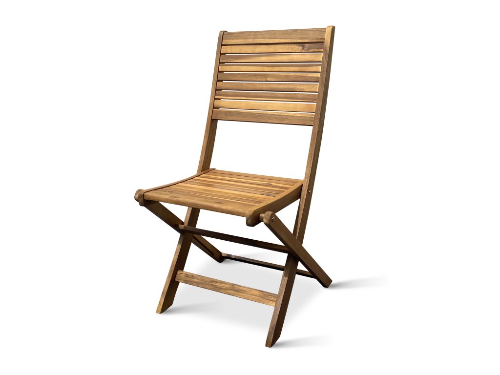 Zahradní stůl doplňuje skládací židle Mandy vyrobená z odolného akáciového dřeva. Díky přirozenému vzhledu akáciového dřeva židle snadno esteticky zapadne do jakékoliv zahrady či terasy. Ve složeném stavu ji jednoduše uskladníte. Nosnost činí až 100 kg.