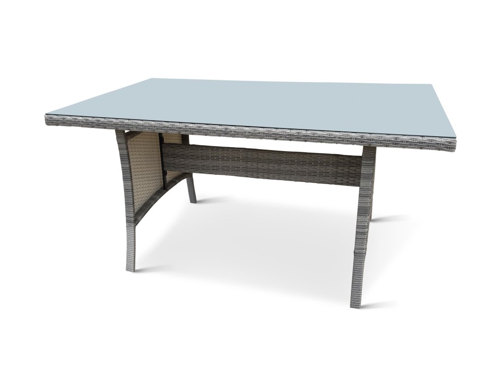Obdélníkový stůl HAITI je ideálním jídelním stolem vhodným jak do zahrady, tak na terasu. Konstrukci z kovu a umělého ratanu doplňuje elegantní skleněná deska. Umělý ratan je velmi oblíbený odolný materiál pro výrobu zahradního nábytku. Dobře snáší jakékoli povětrnostní podmínky a po celá léta si uchovává svůj vzhled. Svou velikostí je stůl optimální pro 4–6 osob. Nastavitelné adaptéry u nohou zajistí větší stabilitu na nerovném povrchu.