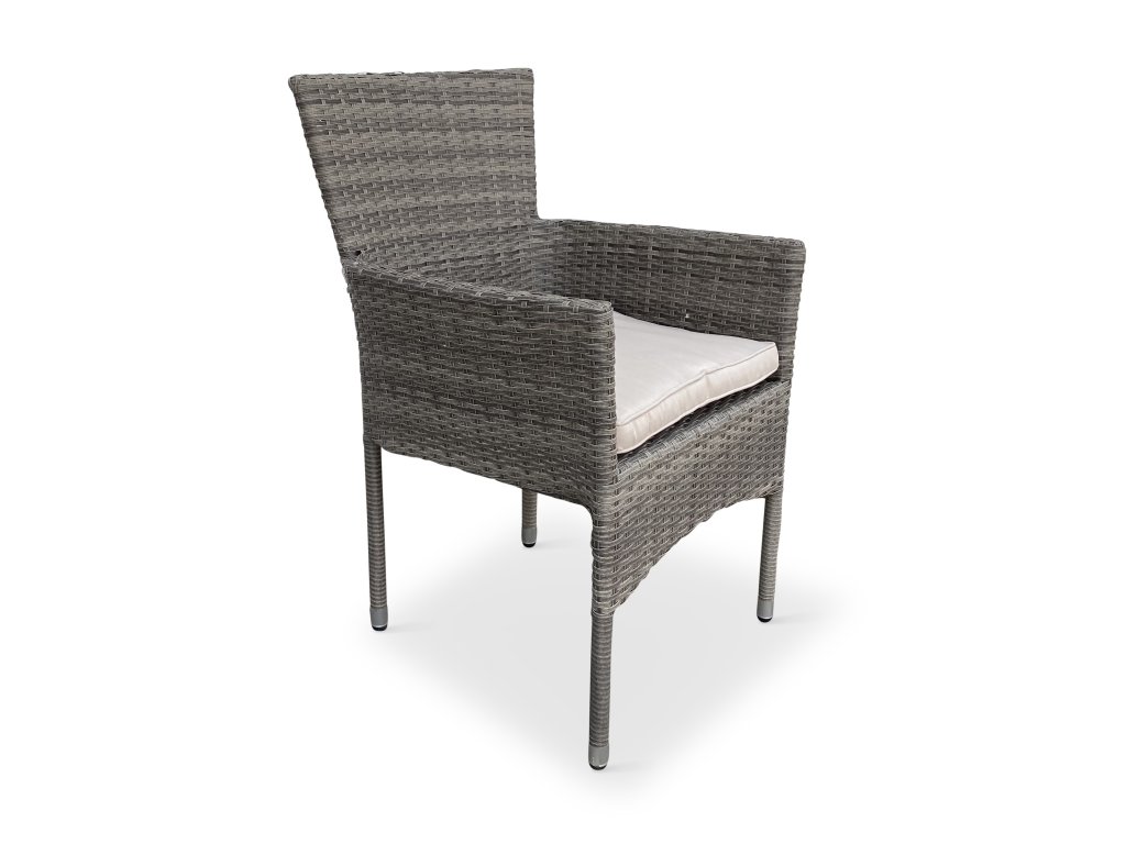 Jídelní stůl doplňuje pohodlné zahradní křeslo s vysoce kvalitní ocelovou konstrukcí. Křeslo je stohovatelné, bezúdržbové a je dodáváno včetně podsedáků. Nosnost činí až 130 kg! Křeslo je vyrobené z umělého ratanu, který je skvělou volbou do českých povětrnostních podmínek. Nevadí mu déšť, mráz, vítr ani slunce.