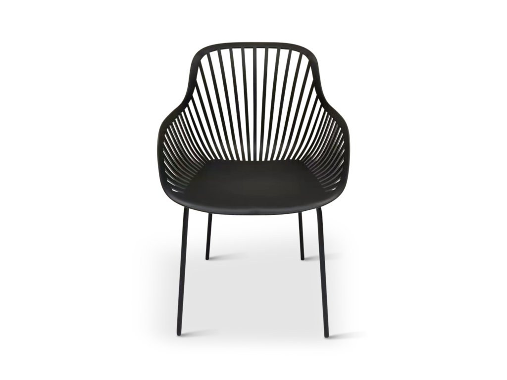 Jídelní stůl doplňuje designové křeslo GABY s područkou v černé barvě vhodné i pro použití venku na zahradě. Křeslo tvoří sedák a opěrka z polypropylenu na 4 pevných nožkách z oceli. Zvolený vzdušný design opěrky oceníte zejména v letních měsících.