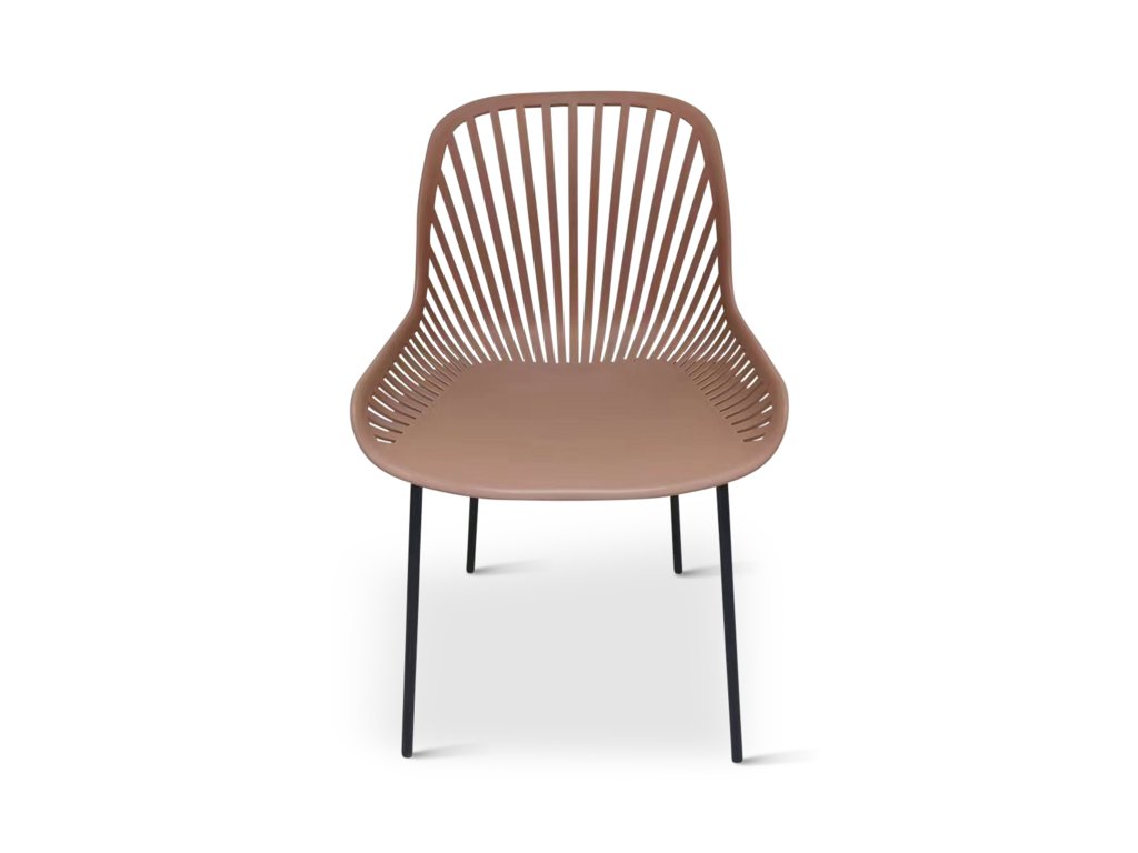 Jídelní stůl doplňují designové židle GABY v růžové barvě vhodné i pro použití venku na zahradě. Židli tvoří sedák a opěrka z polypropylenu na 4 pevných nožkách z oceli. Zvolený vzdušný design opěrky oceníte zejména v letních měsících.