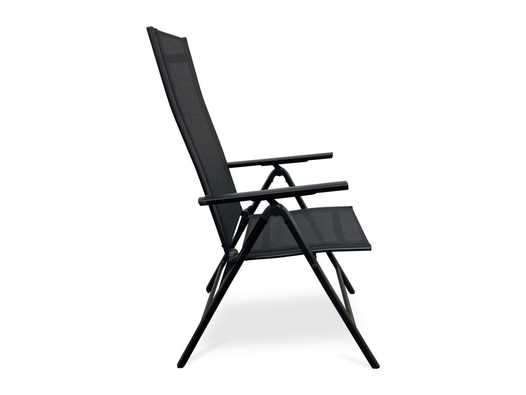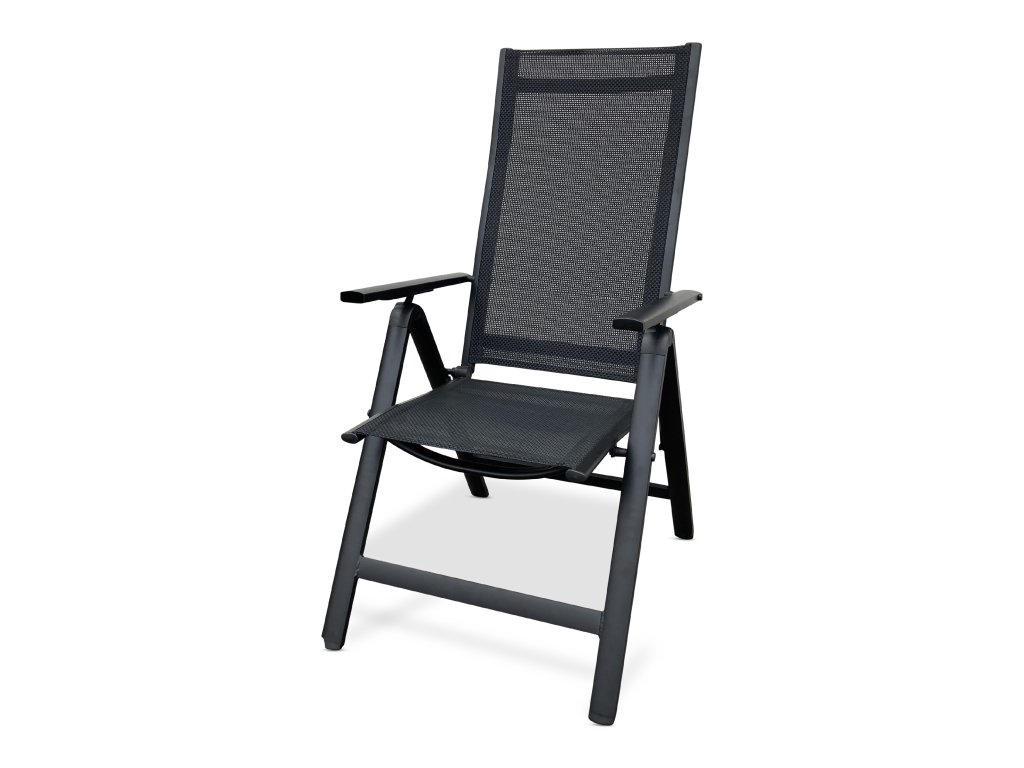 Jídelní stůl doplňuje moderní polohovací a skládací židle Tony. Zahradní židle Tony je vyrobena z hliníku, který vyniká svou stabilitou a dlouhou životností. Sedák a zádovou opěrku tvoří vzdušná textilie. Konstrukci židle doplňují pohodlné opěry pro ruce. Nosnost činí až 130 kg!