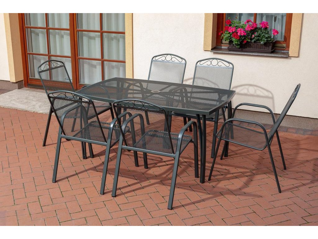 Sestavu tvoří Zahradní kovový stůl Lana steel - hranatý a 6 Zahradních kovových židlí Lana steel.