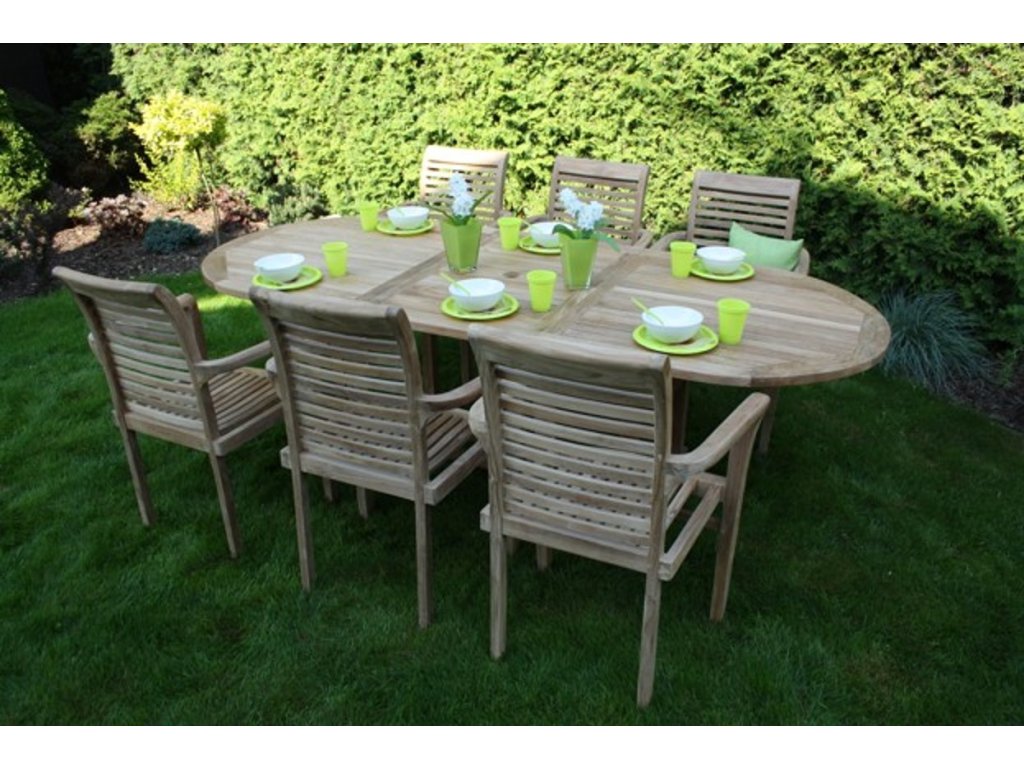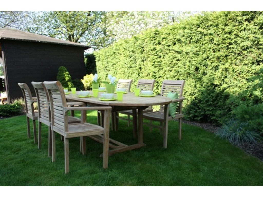 Zahradní sestava z tvrdého dřeva teak. Sestava nábytku Faisal I. nabízí pohodlné sezení pro 6 lidí. Teakové dřevo oplývá skvělými vlastnostmi pro výrobu zahradního nábytku. Má dlouhou životnost, je odolné proti parazitům a škůdcům a je vhodné pro použití v náročnějších povětrnostních podmínkách. Sestava je dodávána v přírodní podobě teak natural. Dřevo je bez povrchové úpravy, kde vynikne jeho přirozená kresba. Zahradní rozkládací stůl oválný Faisal a 6 zahradních dřevěných křesel Stucking tvoří dohromady opravdu luxusní sestavu nábytku pro Vaši zahradu.