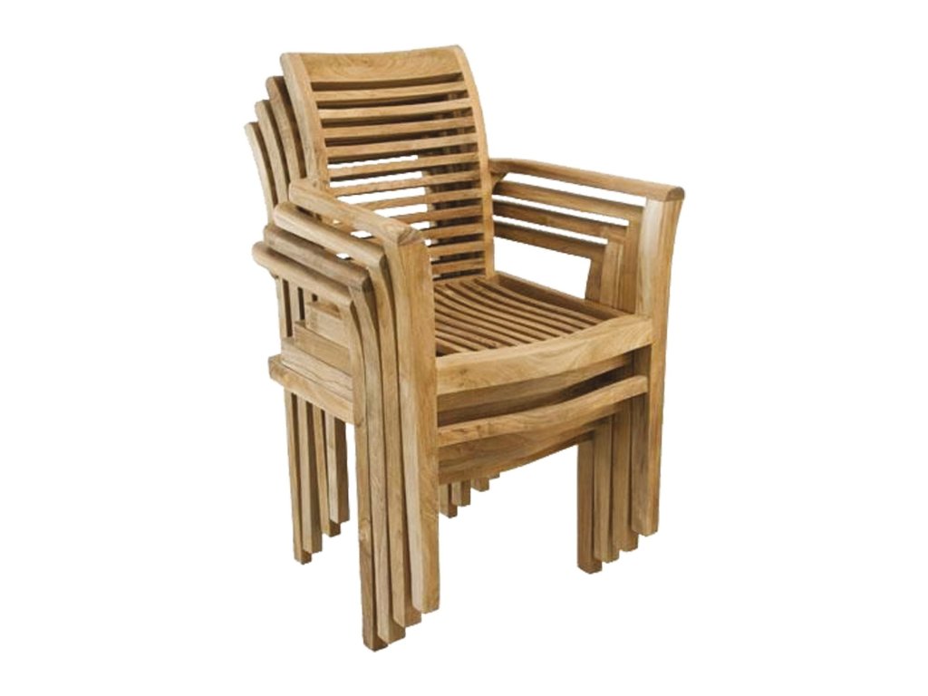 Zahradní stůl doplňuje 6 pevných stohovatelných křesel Stucking s područkami, která jsou rovněž vyrobena z teakového dřeva. Díky použitému materiálu je křeslo velmi pevné a stabilní. Nosnost činí až 130 kg.