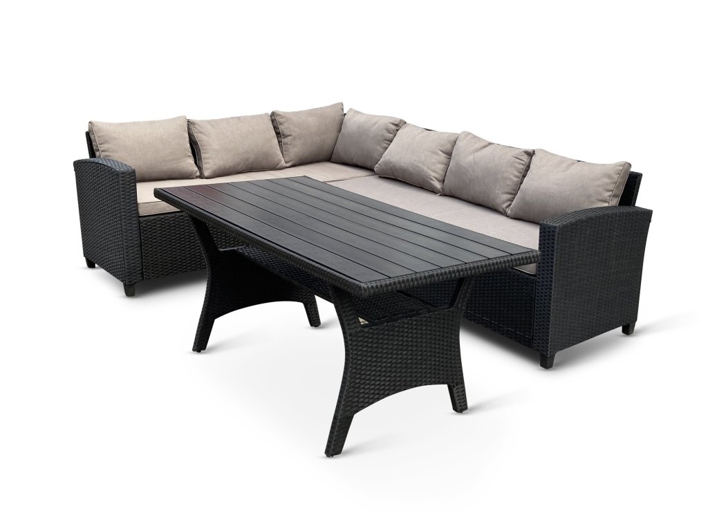 Jistě oceníte vysokou opěrku zad a vysoký stůl, díky kterému může celá rodina i pohodlně stolovat. Uvítáte i měkkost kvalitního polstrování, které Vám zajistí skvělý komfort. Konstrukce je z pevné oceli ošetřené proti rzi a ručně proplétaný umělý ratan je odolný vůči vodě i sněhu a navíc je opatřen UV filtrem, díky němuž barva neztrácí na kvalitě ani na přímém slunci.
