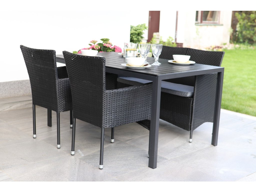 Stůl Viking L je ideálním jídelním stolem vhodným jak do zahrady, tak na terasu. Moderní, atraktivní design, který ještě dlouho nevyjde z módy a jen tak Vás neomrzí. Konstrukce stolu vyrobená z hliníku a adaptéry u nohou zaručují dostatečnou stabilitu a nosnost. Deska stolu v černé barvě je vyrobena z umělého dřeva artwood. Umělé dřevo oproti tomu přírodnímu skýtá celou řadu výhod. Artwood je odolný vůči dešti, sněhu i prudkému slunci. Nevyšisuje barvu, nepropustí vodu a nenapadnou jej dřevokazní parazité.