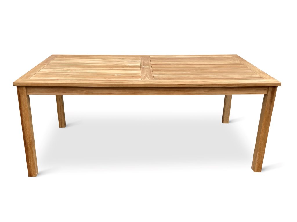 Robustní obdélníkový stůl Garden II, který je svým rozměrem 180 x 100 cm optimální pro 4-8 osob. Dřevěná deska stolu o síle 2,7 cm má uprostřed praktický otvor pro slunečník o průměru 5 cm. Dodáváno včetně dřevěné záslepky.
